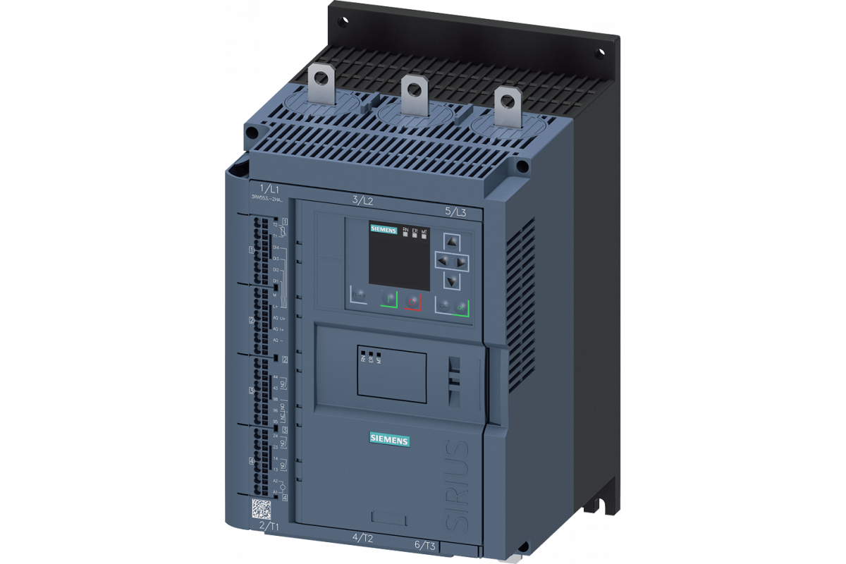 Устройство плавного пуска SIRIUS, ном. раб. напряжение Ue 200-480 В АС, ном. раб. ток до 143 A (CLASS 10 E), ном. питающее напряжение управления Us: 110-250 В AC, шинные присоединения главной цепи, пружинные клеммы вспомогательных цепей