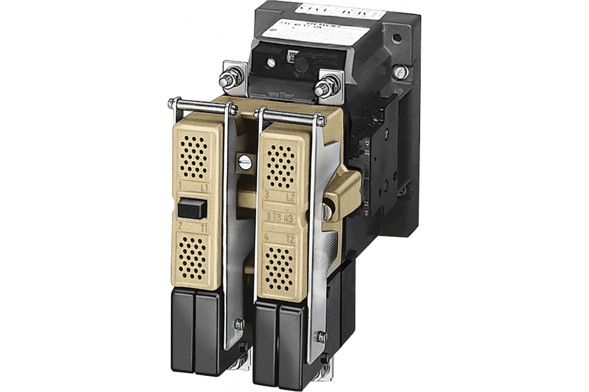 Контактор, типоразмер 12, 2-полюсный, номинальный рабочий ток 400 А Вспомогательный выключатель 44E (4 НО+4 НЗ) 120 В переменного тока 60 Гц/100 В переменного тока 50 Гц Работа от переменного тока Работа от переменного тока