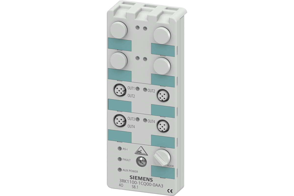 AS-i компактный модуль K60 digital 4 DQ, IP67 4 x выхода, 2 A 24 В постоянного тока максимум 4 A для всех выходов 4 x M12 гнездо Y-II Назначение Монтажная пластина 3RK1901-0CA00 заказывается отдельно