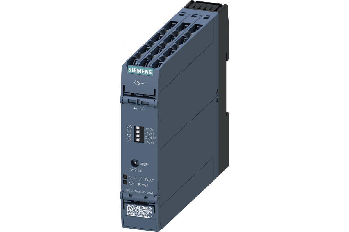 Компактный модуль AS-i SlimLine SC22.5, IP20, аналоговый, 4AI-C/V Винтовые клеммы 4 x аналоговый вход Входы переключаемые C/V Габаритная ширина 22.5 мм
