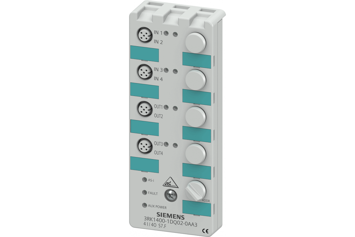 AS-i компактный модуль K60 цифровой 2 x (2 DI/2 DQ), IP67 2 x 2 входа, максимум 200 мА 2 x 2 выхода, 1 A, 24 В постоянного тока 4 x M12 стандартное гнездо Y назначение Монтажная плата 3RK1901-0CA00 заказывается отдельно
