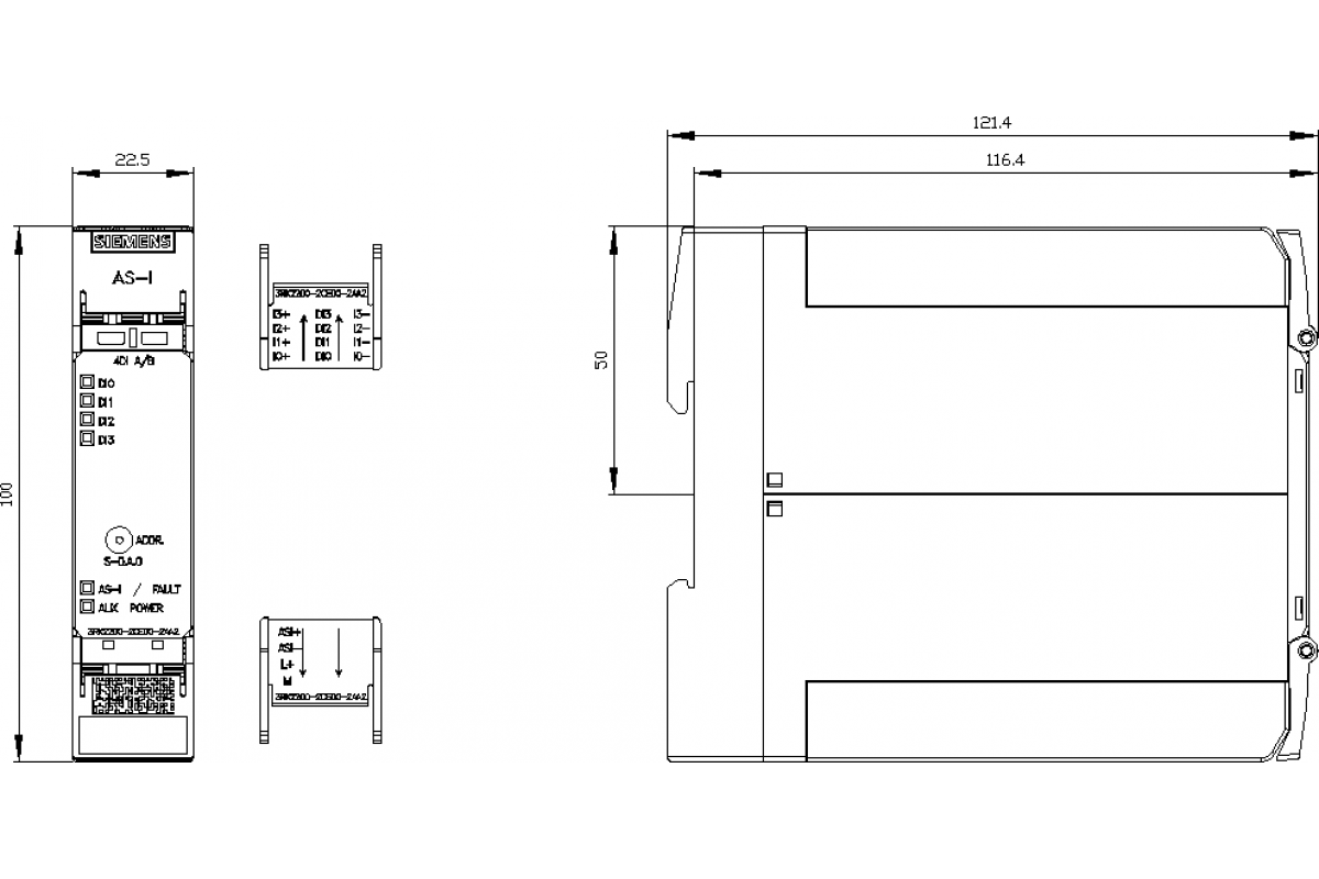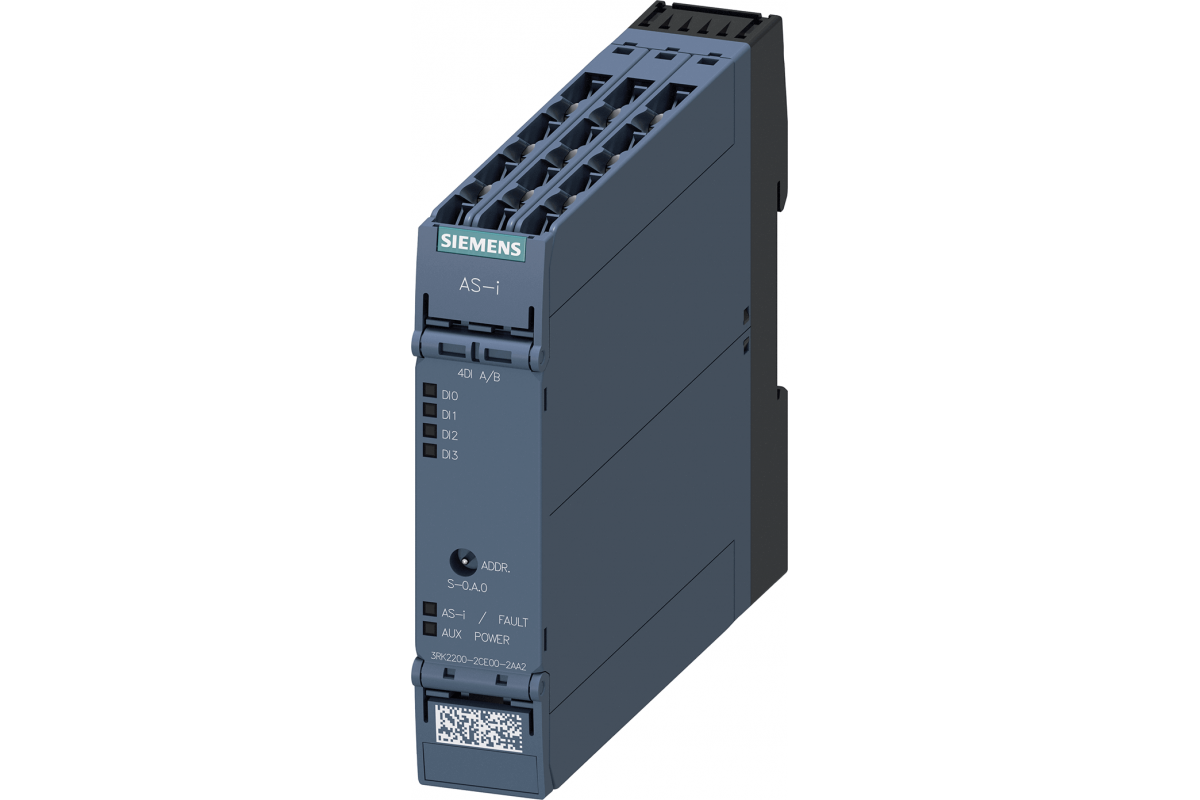 Компактный модуль AS-i SlimLine SC22.5 цифровой, A/B ведомый 4 DI, IP20 4 x входа для 3-проводного датчика Питание датчика можно переключать Винтовые клеммы Ширина 22.5 мм