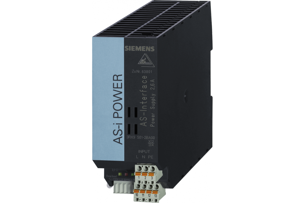 AS-i Power 2.6 A, макс. 100 Вт 120 В/230 В AC AS-Интерфейсный блок питания, IP20 IN: 120 В AC / 230 В OUT: AS-i, 2.6 A (30 В постоянного тока) Ограничение выходной мощности макс. 100 Вт, IP20 с интеграцией. обнаружение замыкания на землю с развязкой данных AS-i