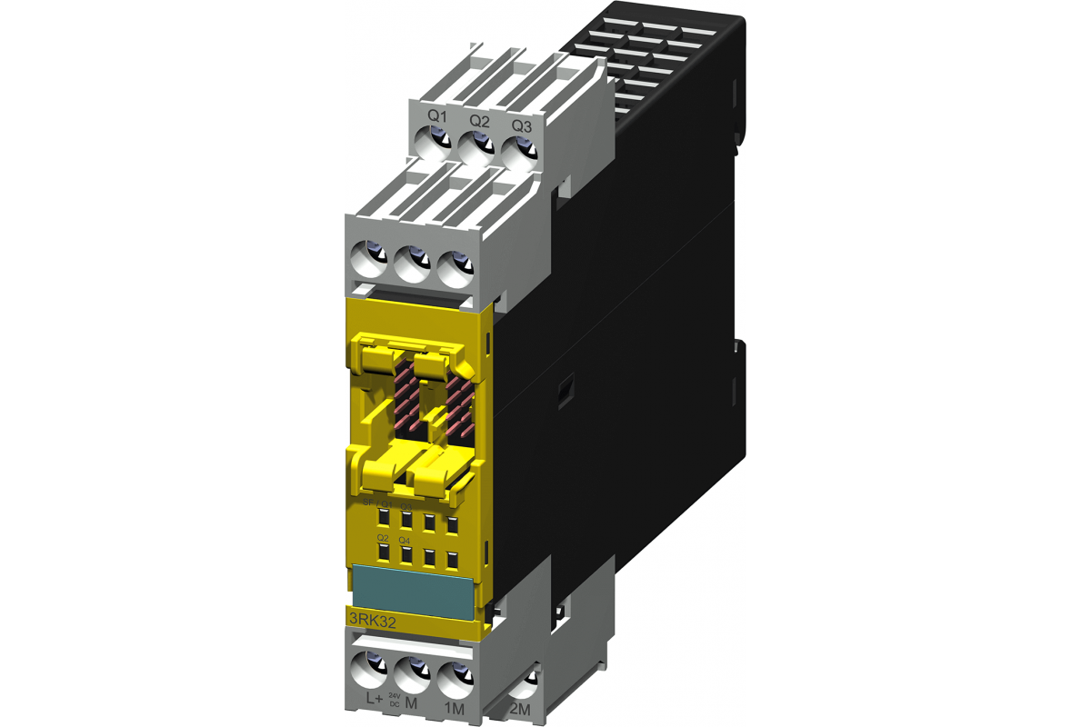 SIRIUS, блок расширения 3RK32 для модульной системы безопасности 3RK3 4 Оу-ЦВых, 24 В DC/2 A возможность параметрирования на MSS ES Установочная ширина 22,5 мм Винтовые зажимы до SIL3 (МЭК 61508) до уровня производительности E (ISO 13849-1) без соединительного кабеля