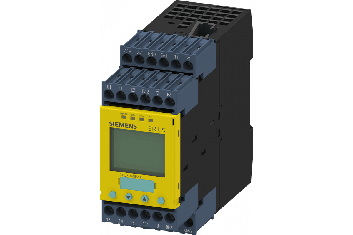 Реле безопасности SIRIUS Контроль скорости 110-240 В AC/DC, габаритная ширина 45 мм Винтовая клемма EC мгновенный: 2 NO EC задержка: 0 SC: 2 электрический Автозапуск/ручной запуск Базовое устройство Максимально достижимый PL согласно EN 13849-1: e Максимально достижимый SIL согласно IEC 61508: 3