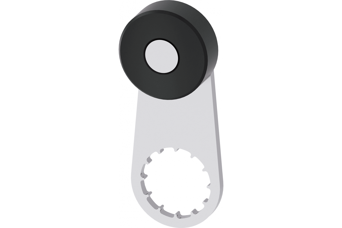 Крутящий рычаг для позиционного выключателя 3SE51/52 Металлический рычаг длиной 30 мм с пластиковым роликом 19 мм Ролик на крышке Поворачивается на 180° Задняя часть рычага монтируется