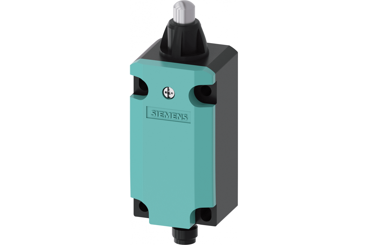 Позиционный выключатель 3SE51 с закругленным плунжером (нержавеющая сталь), металлический корпус 40 мм в соответствии с EN 50041 1 НО/1 НЗ контакты быстрого действия с разъемом M12; 4-полюсный, фиксированное назначение контактов Pin1=21, Pin2=22 Pin3=13, Pin4=14