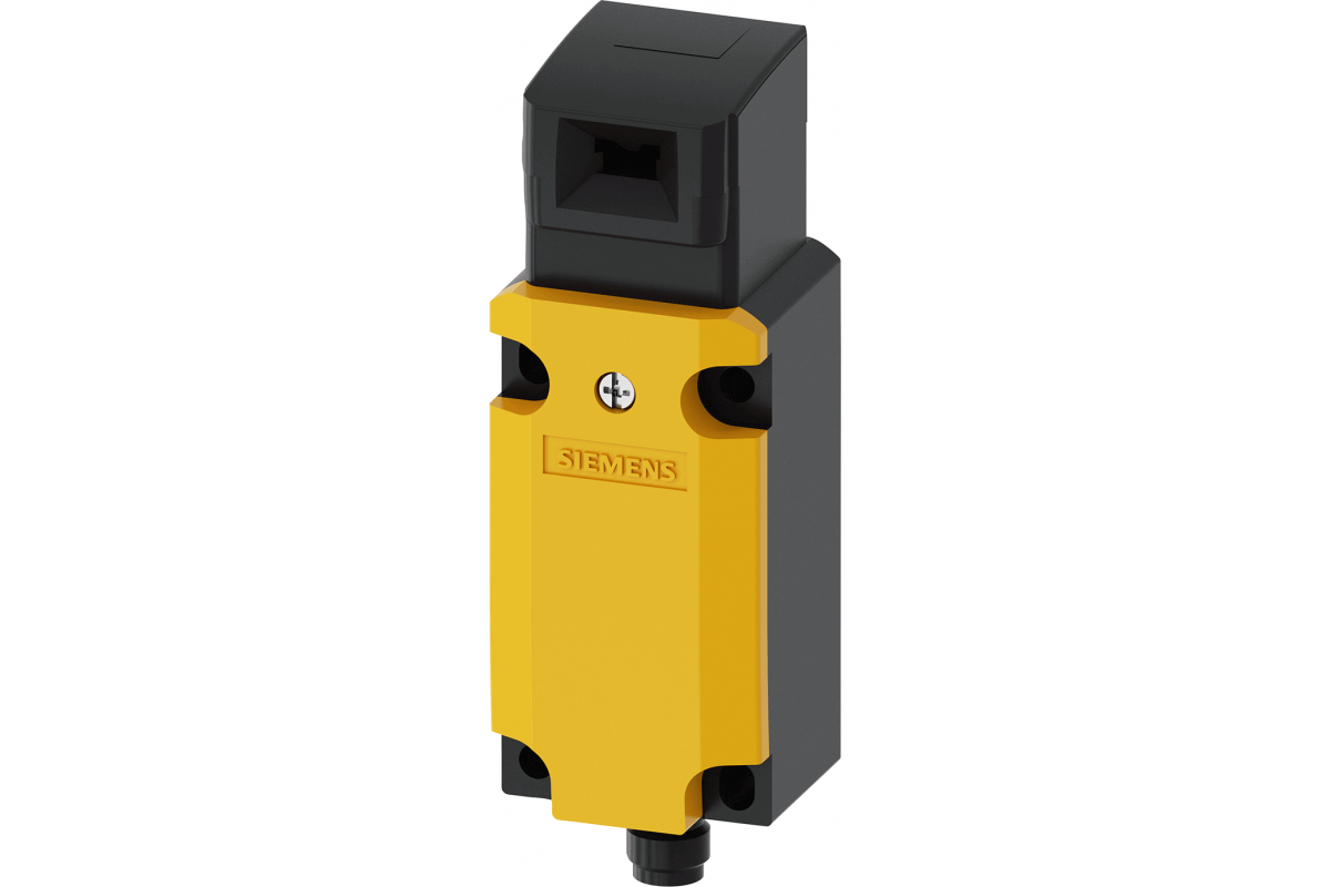 Выключатель положения безопасности с отдельным приводом Металлический корпус, 40 мм Контакты замедленного действия 2 НЗ с разъемом M12, пластиковый 5-полюсный, макс. 125 В, 4 A, 2 нормально замкнутых контакта, 5 направлений подхода. Соответствующий отдельный привод 3SE5000-0AV./W. заказывается отдельно.