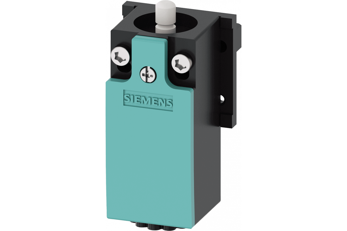 SIRIUS POSITION SWITCH PLASTIC HOUSING В СООТВ. С EN50047, 31MM CABINET TYPE DEVICE CONNECTION 1X(M20X1.5), 1NO/1NC БЫСТРОДЕЙСТВУЮЩИЕ КОНТАКТЫ (SNAP-ACTION)S INTEGRATED(NON-INTERCHANGEABLE) ROUNDED ПЛУНЖЕР, DEGREE OF PROTECTION IP40, WITH SELF-SEALING GROMMET, FLAT TURQUOISE COVER, WITH ACCESSORIES: SCREWS AND MOUNTING PLATE, WITHOUT LOCKING PLATE AND SEAL
