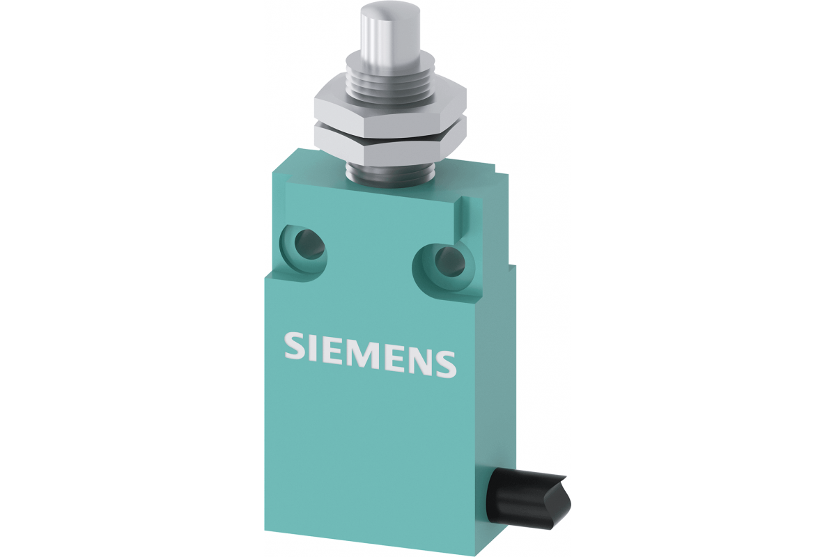 Позиционный выключатель в компактном исполнении шириной 30 мм с соединительным кабелем 2 м Защелкивающиеся контакты 1 NO+1 NC с закругленным плунжером с центральным креплением
