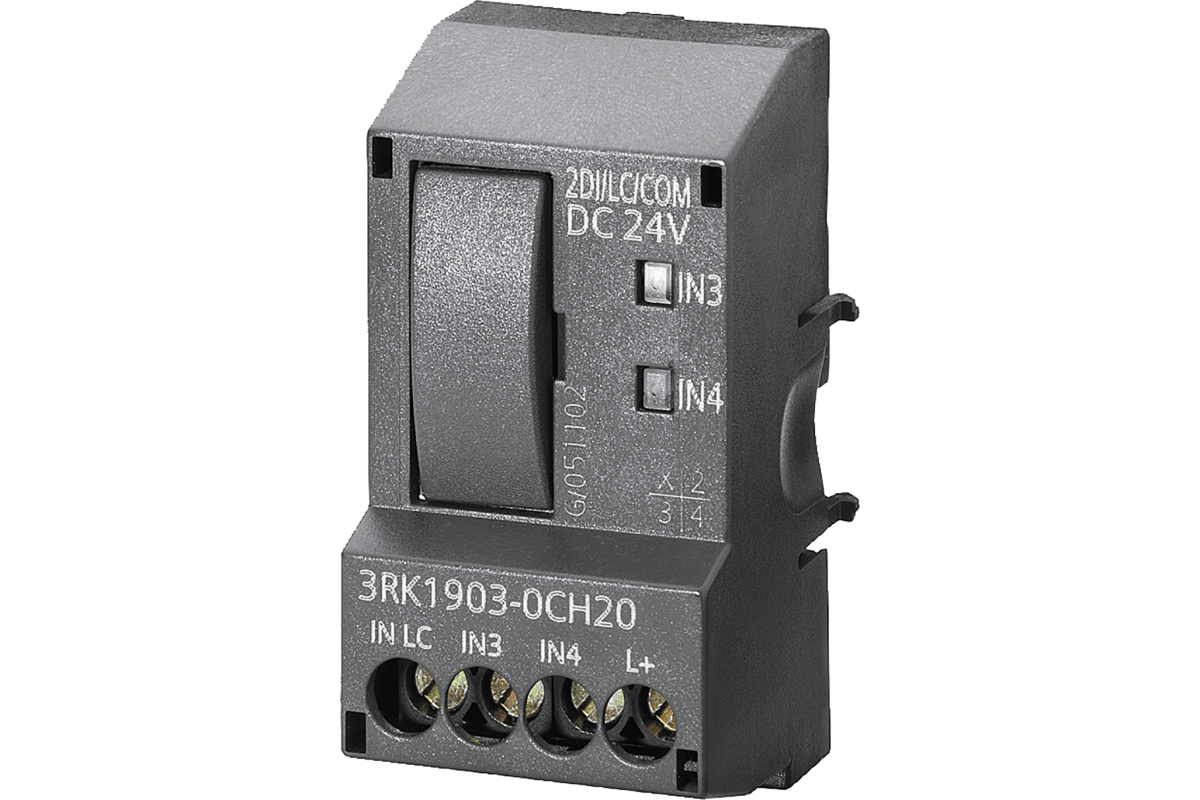 SIMATIC DP, ET 200S, 2DI: ОПЦИОНАЛЬНЫЙ МОДУЛЬ, МОНТИРУЕМЫЙ НА ФРОНТАЛЬНУЮ ПАНЕЛЬ СИЛОВЫХ МОДУЛЕЙ DS1E-X, RS1E-X, DSS1E-X, ДВА ДИСКРЕТНЫХ ВХОДА =24 В ДЛЯ УПРАВЛЕНИЯ КОНТАКТОРОМ МОДУЛЯ, С ИНТЕРФЕЙСОМ ДЛЯ ПОДКЛЮЧЕНИЯ СОЕДИНИТЕЛЬНОГО КАБЕЛЯ 6ED1057-1AA00-0BA0