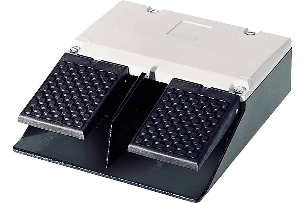 Педальный выключатель с кратковременным контактом, 2-педальный без крышки, без фиксации, металлический корпус IP65, кабельный ввод M25 x 1.5 контактов замедленного действия 2 НО+2 НЗ на педаль