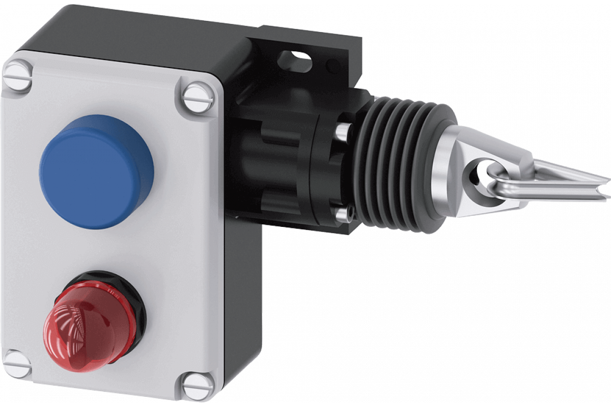Выключатель SIRIUS с кабельным приводом металлический корпус, 1x M20x1.5; 1 НО+1 НЗ, с фиксацией EN ISO 13850 и кнопочной разблокировкой, со светодиодной лампой 24 В постоянного тока, красный, для длины провода до 50 м