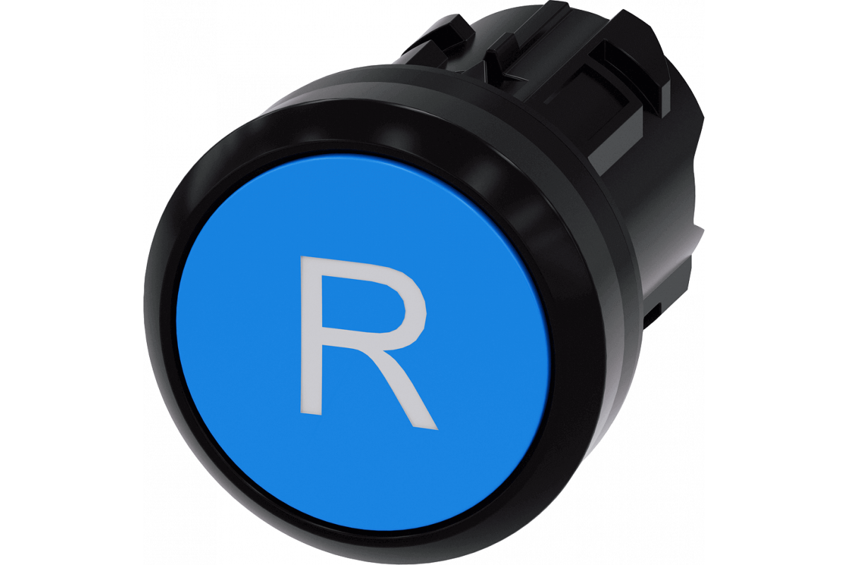 Кнопка, 22 мм, круглая, пластик, синий, надпись: R, кнопка, плоская, моментный тип контакта
