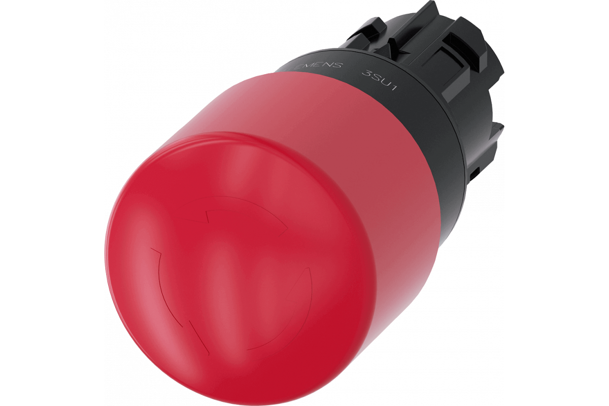 Грибовидная кнопка АВАРИЙНЫЙ СТОП, 22 мм, круглая, пластиковая, красная, 30 мм, с принудительной защелкой, acc. в соответствии с EN ISO 13850, поворотно-открывающаяся