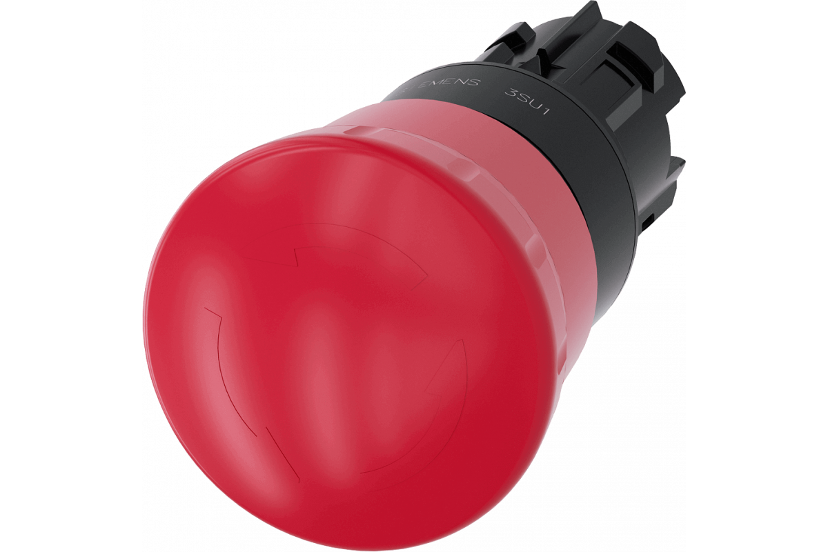 Грибовидная кнопка аварийного останова, 22 мм, круглая, пластиковая, красная, 40 мм, с принудительной защелкой, в соответствии со стандартом EN. в соответствии с EN ISO 13850, поворотно-откидной