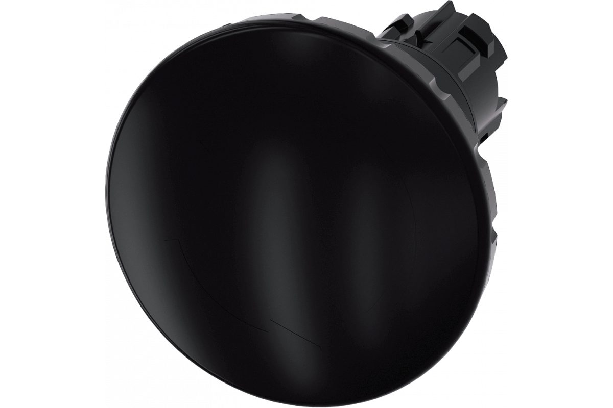 Грибовидная кнопка, 22 мм, кругл., пластмасса, цвет: черный, 60 мм, положительная блокировка, согласно DIN EN ISO 13850, поворотный расцепной механизм