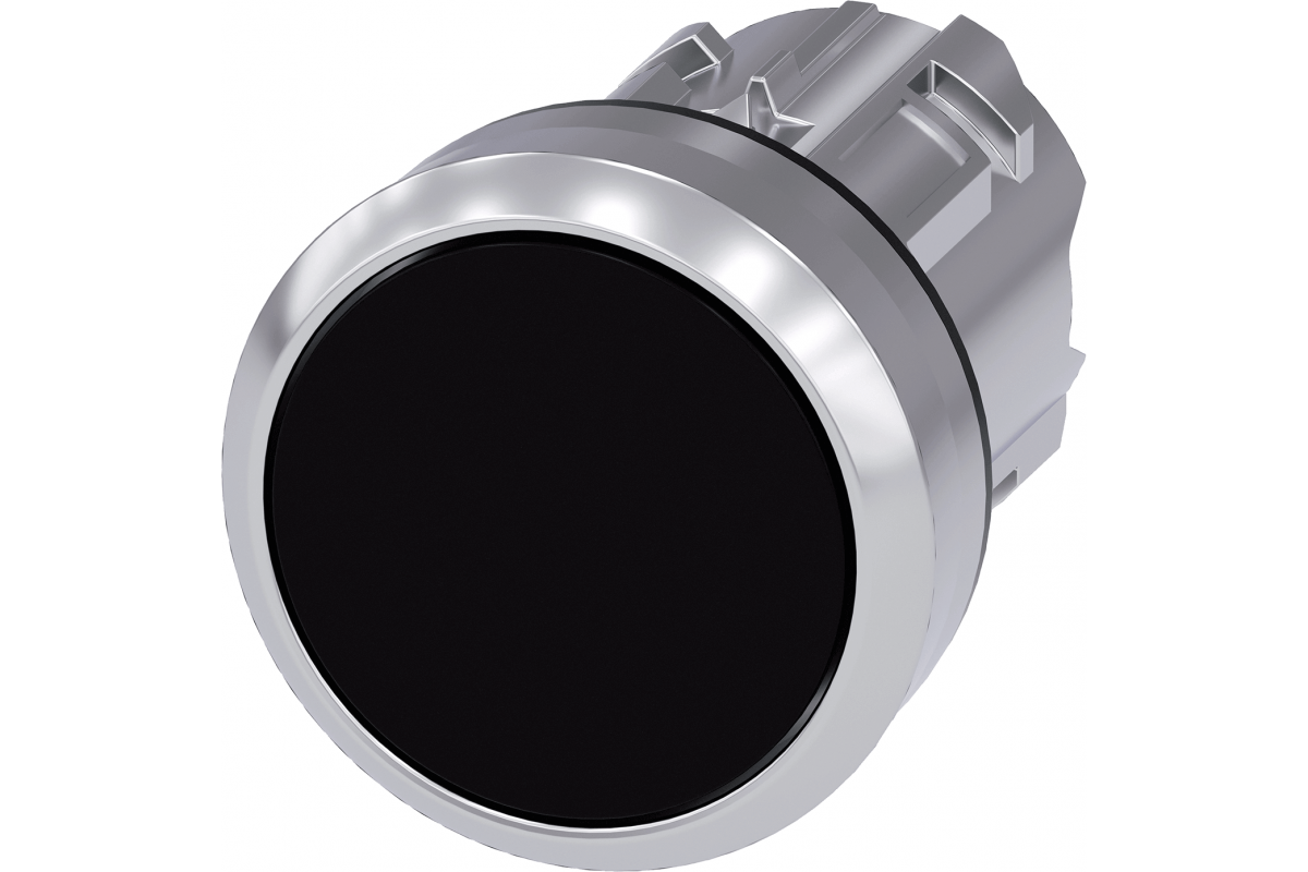 АКТУАТОР КНОПКИ, 22MM, КРУГЛ., ГЛЯНЦЕВЫЙ МЕТАЛЛ, КНОПКА ЧЁРНАЯ ПЛОСКАЯ БЕЗ ФИКСАЦИИ