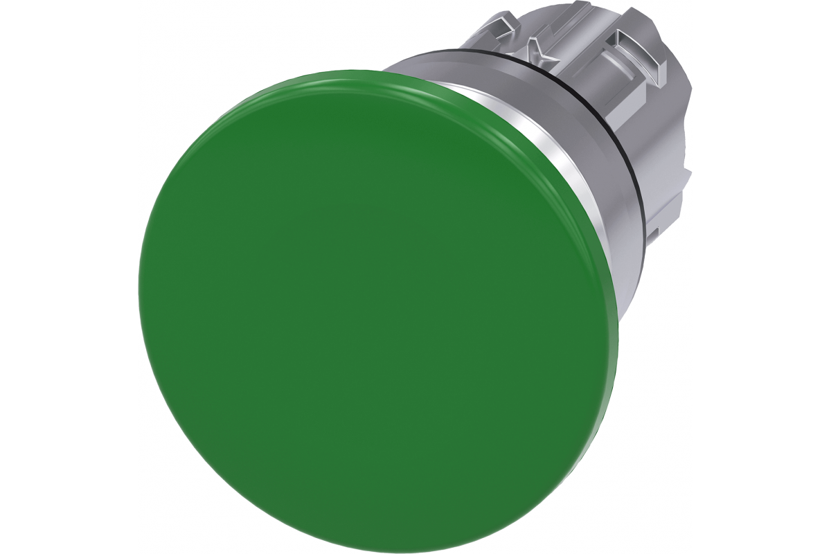 АКТУАТОР ГРИБОВИДНОЙ КНОПКИ, 22MM, КРУГЛ., ГЛЯНЦЕВЫЙ МЕТАЛЛ, КНОПКА ЗЕЛЁНАЯ, 40MM, БЕЗ ФИКСАЦИИ