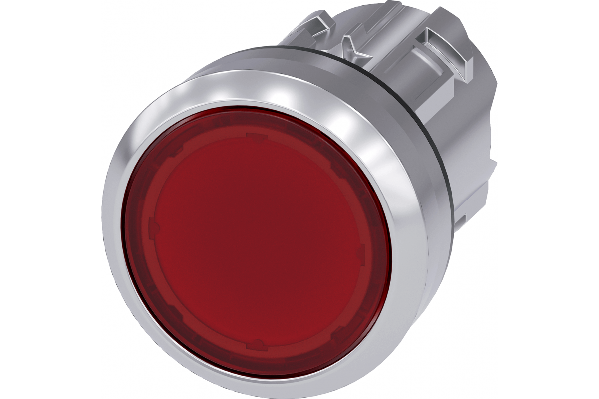 АКТУАТОР КНОПКИ С ВОЗМОЖНОСТЬЮ ПОДСВЕТКИ, 22MM, КРУГЛ., ГЛЯНЦЕВЫЙ МЕТАЛЛ, КНОПКА КРАСНАЯ ПЛОСКАЯ, БЕЗ ФИКСАЦИИ