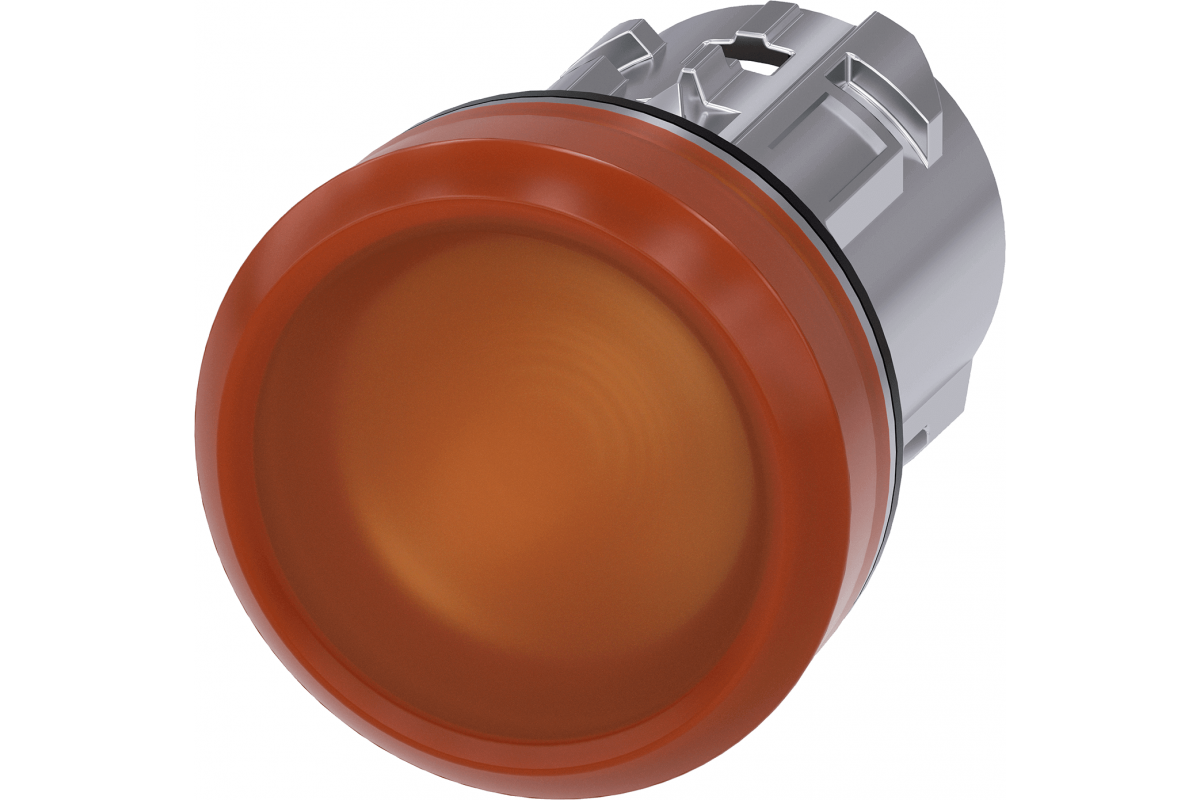 Элемент светового индикатора с "янтарным" рассеивателем, 22mm, кругл., глянцевый металл, рассеиватель матовый