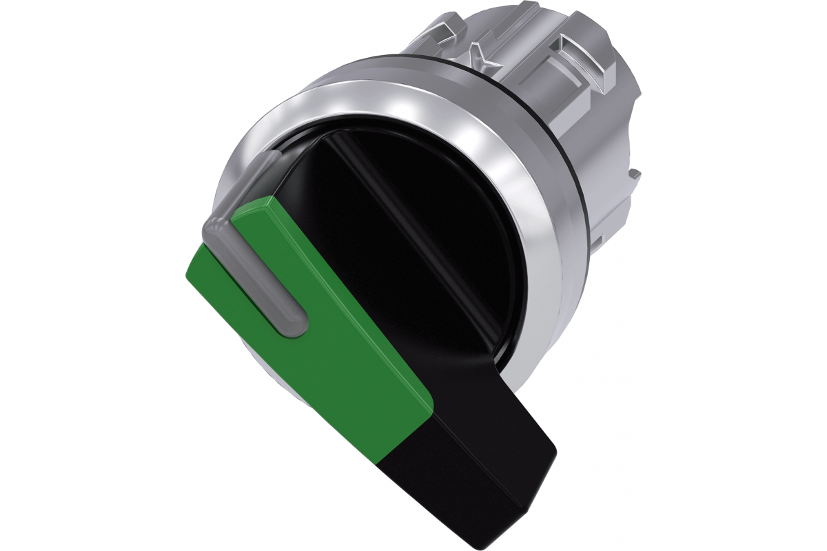 АКТУАТОР ПОВОРОТНОГО ПЕРЕКЛЮЧАТЕЛЯ С ВОЗМОЖНОСТЬЮ ПОДСВЕТКИ, 22MM, КРУГЛ., ГЛЯНЦЕВЫЙ МЕТАЛЛ, РУКОЯТКА ДЛИННАЯ ЧЁРНАЯ С ЗЕЛЁНОЙ ВСТАВКОЙ, 2 КОММУТАЦИОННЫХ ПОЛОЖЕНИЯ: O-I, С ФИКСАЦИЕЙ, УГОЛ ПОВОРОТА РУКОЯТКИ 90 ГРАД. : 10:30Ч./13:30Ч.