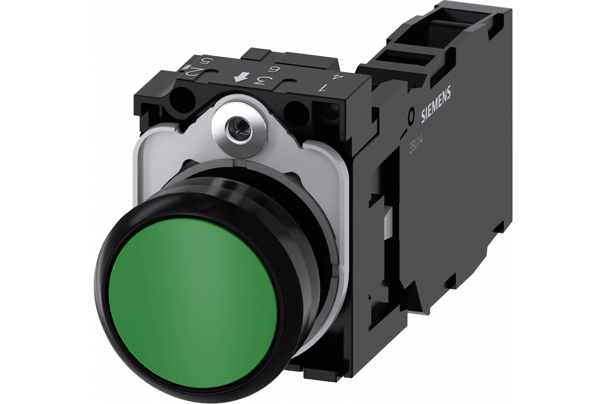 КНОПКА, 22MM, КРУГЛАЯ, ПЛАСТИК, ЗЕЛЁНАЯ, ПЛОСКАЯ КНОПКА, КОНТАКТЫ МГНОВЕННОГО ДЕЙСТВИЯ, С ДЕРЖАТЕЛЕМ 1NO+1NC, ВИНТОВЫЕ КЛЕММЫ,