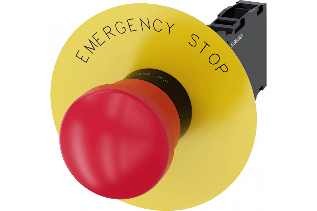 АВАРИЙНАЯ ГРИБОВИДНАЯ КНОПКА, 22MM, КРУГЛАЯ, ПЛАСТИК, КРАСНАЯ, 40MM, С ФИКСАЦИЕЙ, POSITIVE LATCHING, ДЕБЛОКИРОВКА ВЫТЯГИВАНИЕМ, С ЖЁЛТОЙ ПОДЛОЖКОЙ, НАДПИСЬ: EMERGENCY STOP, С ДЕРЖАТЕЛЕМ, 1NO+1NC, ВИНТОВЫЕ КЛЕММЫ
