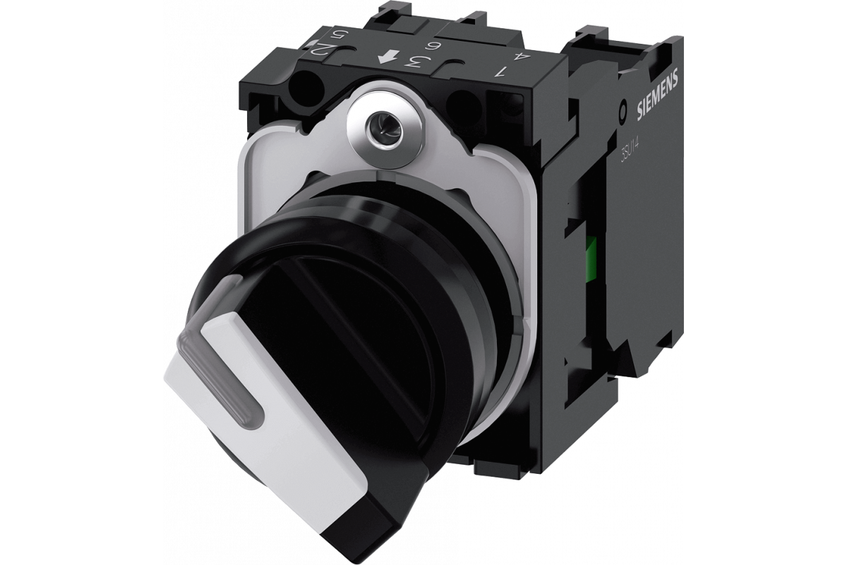 ПОВОРОТНЫЙ ПЕРЕКЛЮЧАТЕЛЬ С ВОЗМОЖНОСТЬЮ ПОДСВЕТКИ, 22MM, КРУГЛЫЙ, ПЛАСТИК, КОРОТКАЯ ЧЁРНАЯ РУКОЯТКА С БЕЛОЙ ВСТАВКОЙ, 2 КОММУТАЦИОННЫХ ПОЛОЖЕНИЯ O-I, С ФИКСАЦИЕЙ, 10:30Ч/13:30Ч, С ДЕРЖАТЕЛЕМ, 1NO, 1NC, ВИНТОВЫЕ КЛЕММЫ