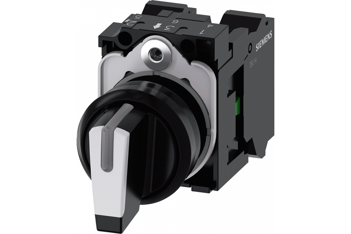 ПОВОРОТНЫЙ ПЕРЕКЛЮЧАТЕЛЬ С ВОЗМОЖНОСТЬЮ ПОДСВЕТКИ, 22MM, КРУГЛЫЙ, ПЛАСТИК, КОРОТКАЯ ЧЁРНАЯ РУКОЯТКА С БЕЛОЙ ВСТАВКОЙ, 3 КОММУТАЦИОННЫХ ПОЛОЖЕНИЯ I-O-II, С ФИКСАЦИЕЙ, 10:30H/12H/13:30H, С ДЕРЖАТЕЛЕМ, 1NO, 1NO, ПРУЖИННЫЕ КЛЕММЫ