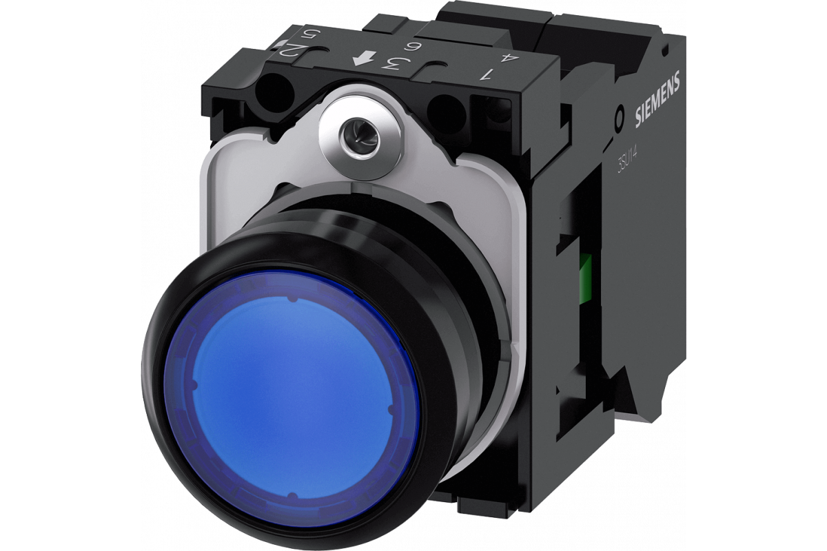 КНОПКА С ПОДСВЕТКОЙ, 22MM, КРУГЛАЯ, ПЛАСТИК, СИНЯЯ, ПЛОСКАЯ КНОПКА, КОНТАКТЫ МГНОВЕННОГО ДЕЙСТВИЯ, С ДЕРЖАТЕЛЕМ, 1NO, МОДУЛЬ ПОДСВЕТКИ С ИНТЕГРИРОВАННЫМ СВЕТОДИОДОМ 24V AC/DC, ПРУЖИННЫЕ КЛЕММЫ