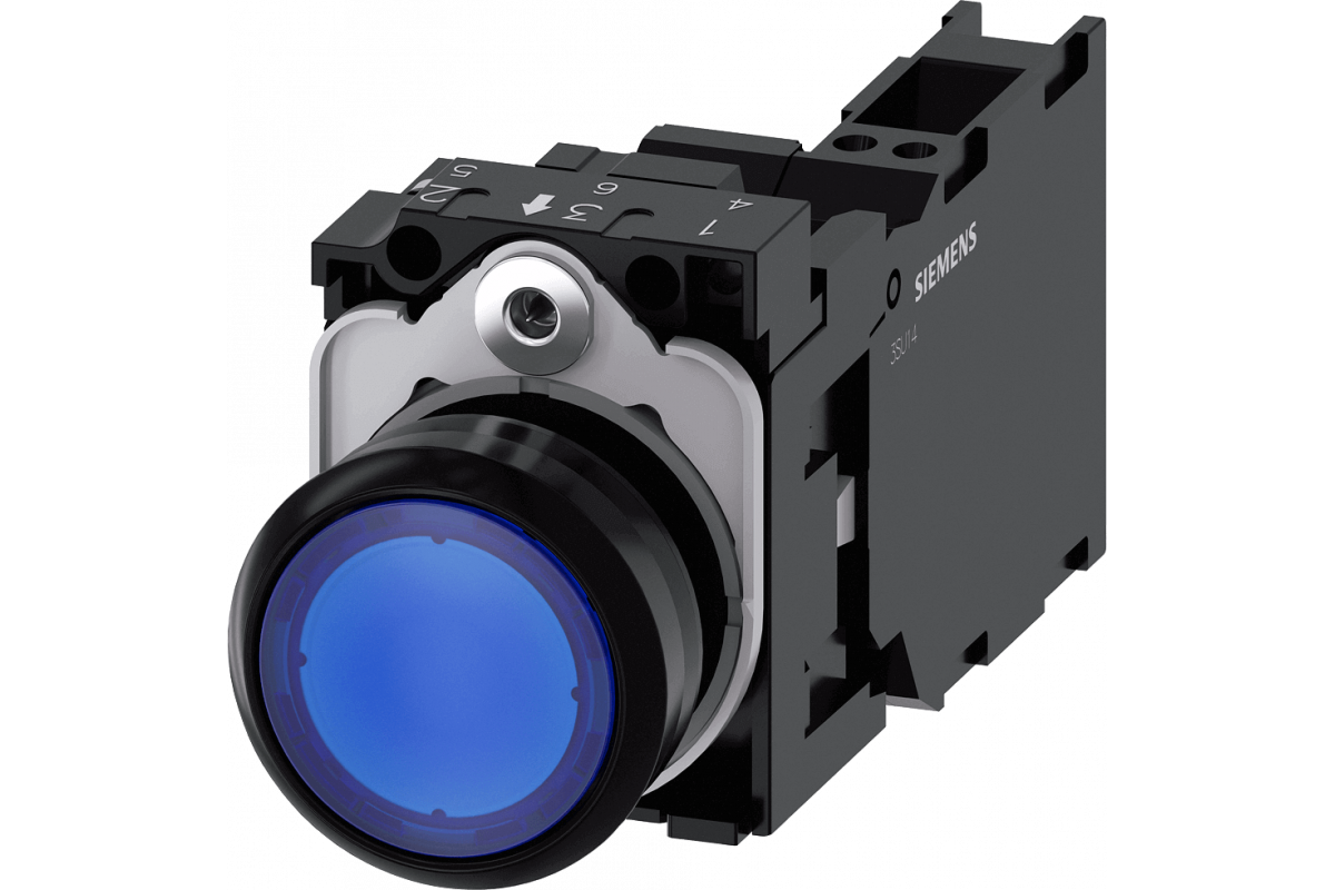 КНОПКА С ПОДСВЕТКОЙ, 22MM, КРУГЛАЯ, ПЛАСТИК, СИНЯЯ, ПЛОСКАЯ КНОПКА, КОНТАКТЫ МГНОВЕННОГО ДЕЙСТВИЯ, С ДЕРЖАТЕЛЕМ, 1NO+1NC, МОДУЛЬ ПОДСВЕТКИ С ИНТЕГРИРОВАННЫМ СВЕТОДИОДОМ 24V AC/DC, ПРУЖИННЫЕ КЛЕММЫ