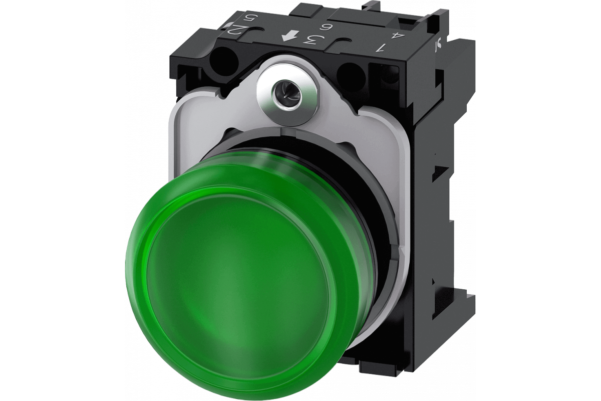 СВЕТОВОЙ ИНДИКАТОР, 22MM, КРУГЛЫЙ, ПЛАСТИК, ЗЕЛЕНЫЙ МАТОВЫЙ РАССЕИВАТЕЛЬ, С ДЕРЖАТЕЛЕМ, МОДУЛЬ ПОДСВЕТКИ С ИНТЕГРИРОВАННЫМ СВЕТОДИОДОМ 24V AC/DC, ВИНТОВЫЕ КЛЕММЫ