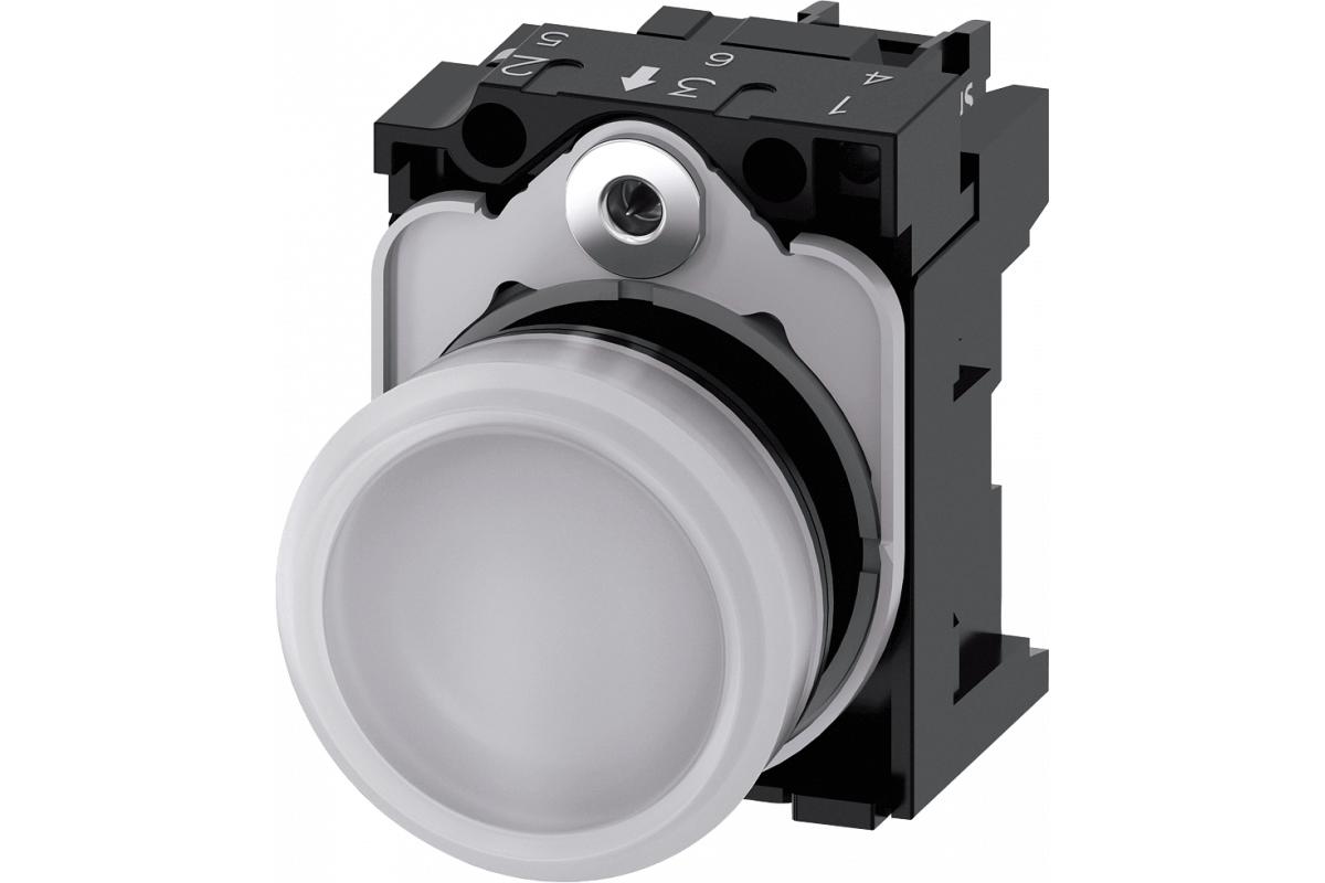 СВЕТОВОЙ ИНДИКАТОР, 22MM, КРУГЛЫЙ, ПЛАСТИК, БЕЛЫЙ МАТОВЫЙ РАССЕИВАТЕЛЬ, С ДЕРЖАТЕЛЕМ, МОДУЛЬ ПОДСВЕТКИ С ИНТЕГРИРОВАННЫМ СВЕТОДИОДОМ 24V AC/DC, ВИНТОВЫЕ КЛЕММЫ