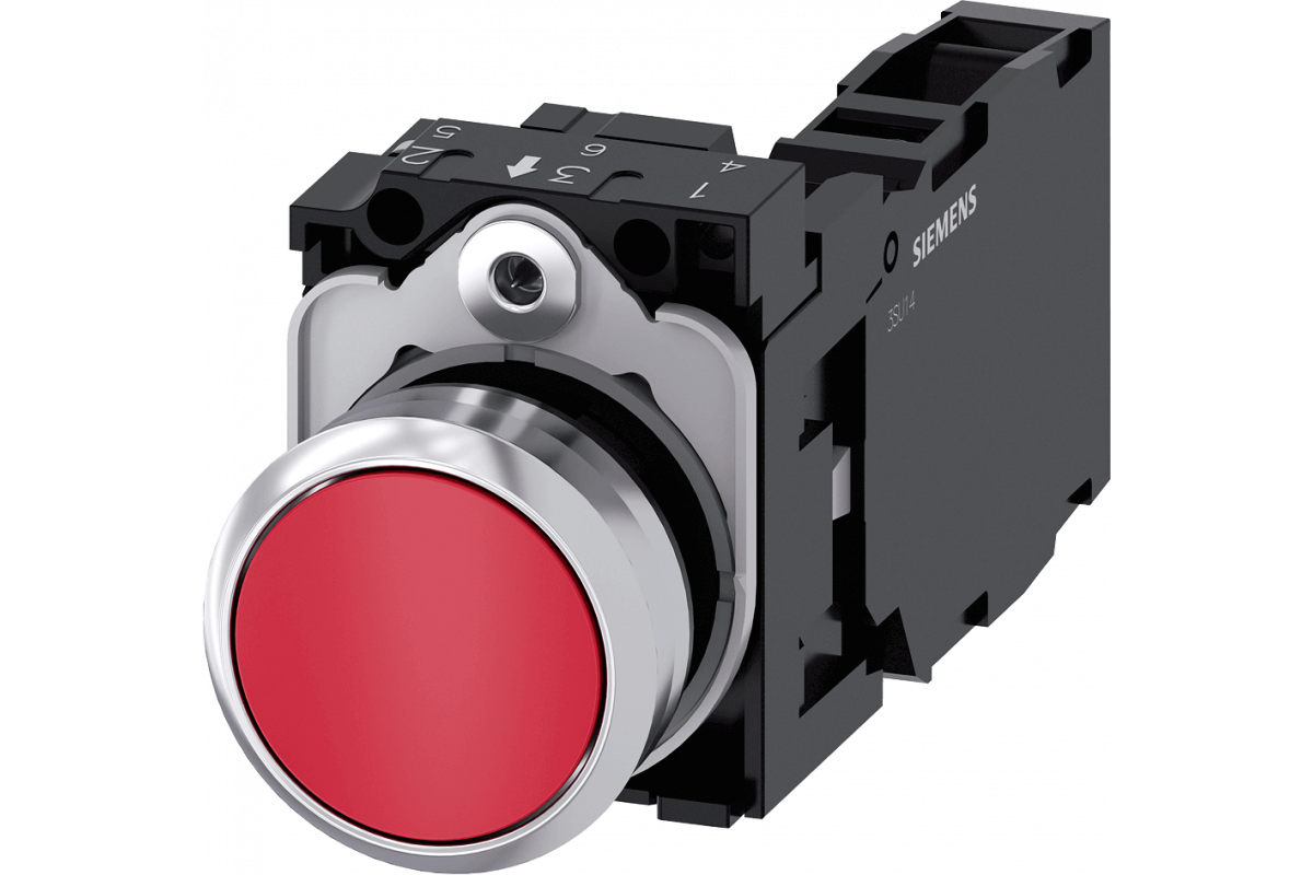 КНОПКА, 22MM, КРУГЛАЯ, МЕТАЛЛИЧЕСКАЯ ГЛЯНЦЕВАЯ, КРАСНАЯ, ПЛОСКАЯ КНОПКА, КОНТАКТЫ МГНОВЕННОГО ДЕЙСТВИЯ, С ДЕРЖАТЕЛЕМ, 1NO+1NC, ВИНТОВЫЕ КЛЕММЫ