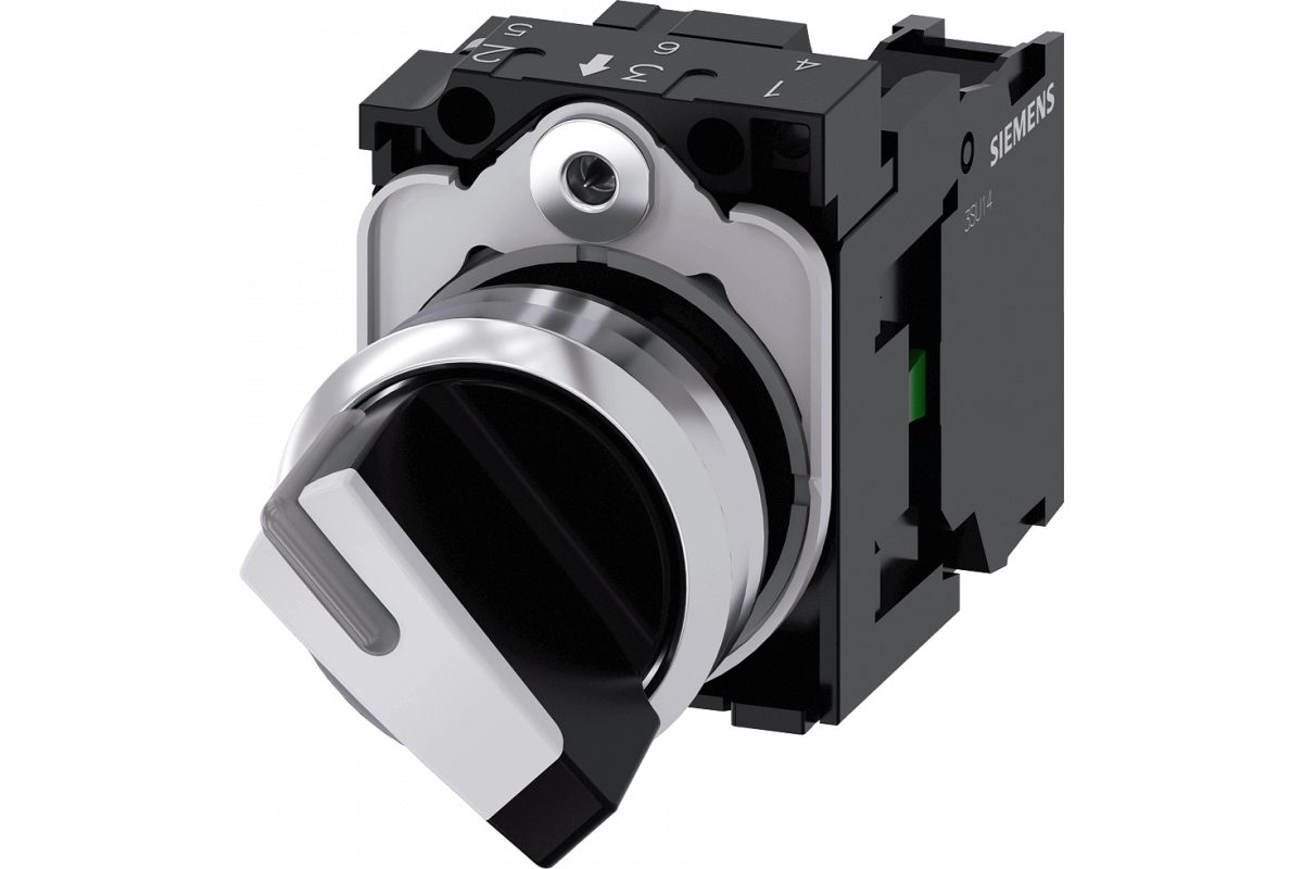 ПОВОРОТНЫЙ ПЕРЕКЛЮЧАТЕЛЬ С ВОЗМОЖНОСТЬЮ ПОДСВЕТКИ, 22MM, КРУГЛЫЙ, МЕТАЛЛИЧЕСКИЙ ГЛЯНЦЕВЫЙ, КОРОТКАЯ ЧЁРНАЯ РУКОЯТКА С БЕЛОЙ ВСТАВКОЙ, 2 КОММУТАЦИОННЫХ ПОЛОЖЕНИЯ O-I, С ФИКСАЦИЕЙ, УГОЛ ПЕРЕКЛЮЧЕНИЯ 90 ГРАД., 10:30Ч/13:30Ч, С ДЕРЖАТЕЛЕМ, 1NO, ВИНТОВЫЕ КЛЕММЫ