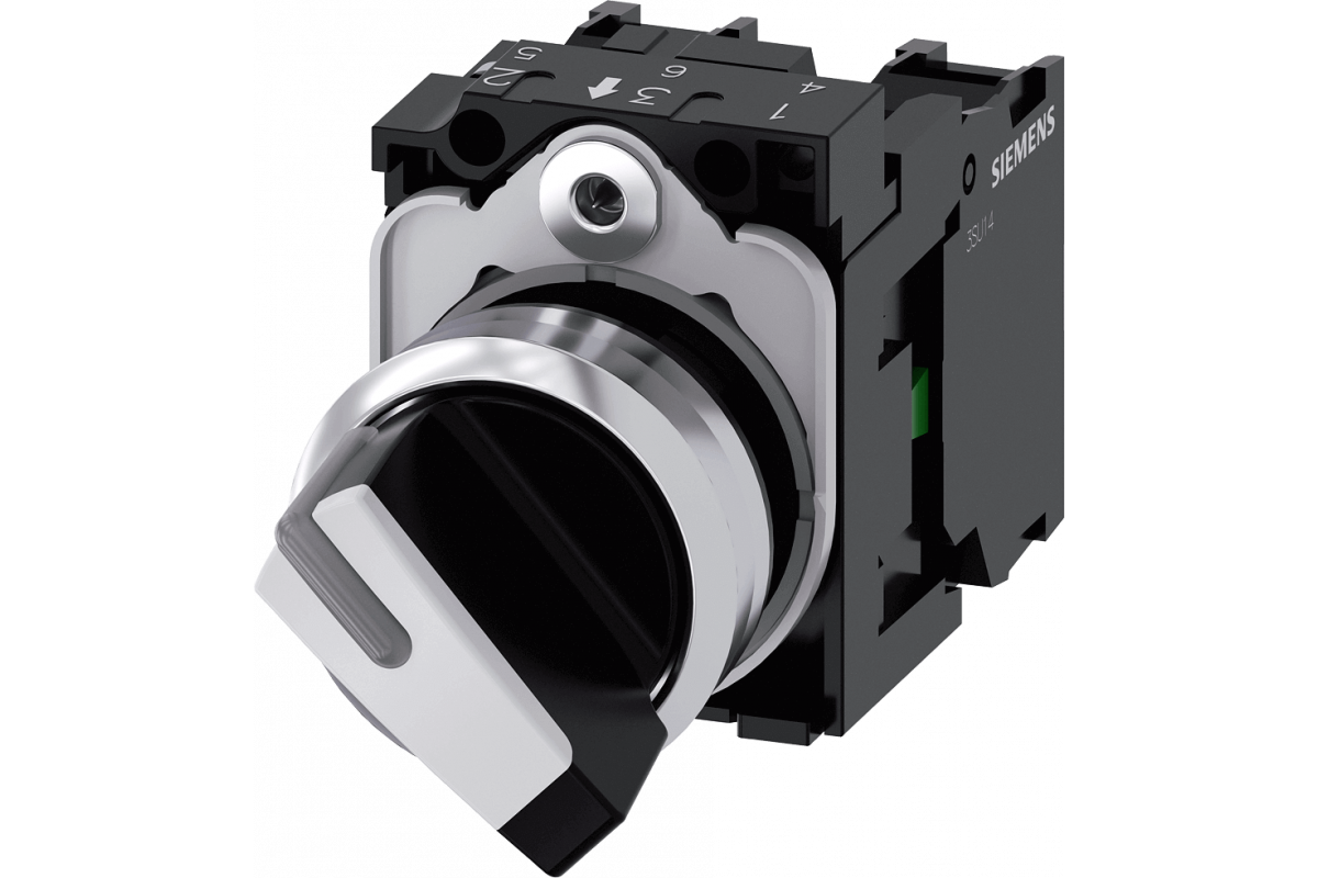 ПОВОРОТНЫЙ ПЕРЕКЛЮЧАТЕЛЬ С ВОЗМОЖНОСТЬЮ ПОДСВЕТКИ, 22MM, КРУГЛЫЙ, МЕТАЛЛИЧЕСКИЙ ГЛЯНЦЕВЫЙ, КОРОТКАЯ ЧЁРНАЯ РУКОЯТКА С БЕЛОЙ ВСТАВКОЙ, 2 КОММУТАЦИОННЫХ ПОЛОЖЕНИЯ O-I, С ФИКСАЦИЕЙ, УГОЛ ПЕРЕКЛЮЧЕНИЯ 90 ГРАД., 10:30Ч/13:30Ч, С ДЕРЖАТЕЛЕМ, 1NO, 1NC, ВИНТОВЫЕ КЛЕММЫ