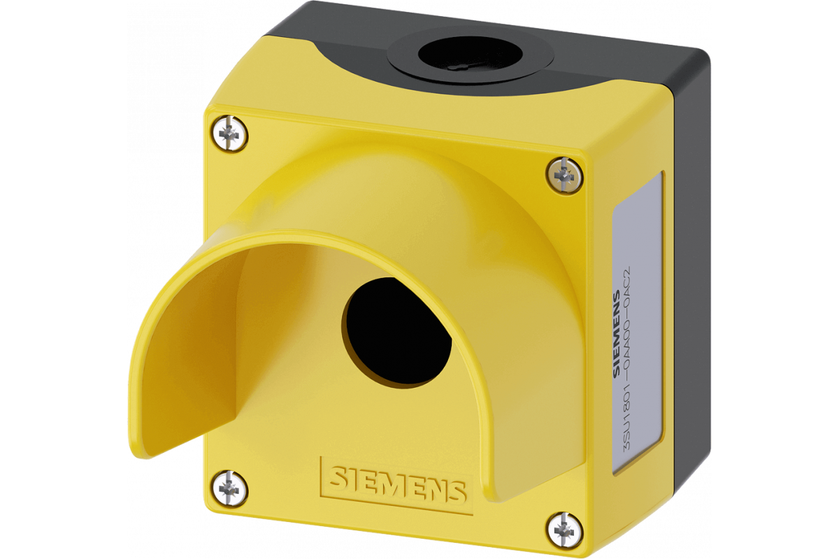 ПУСТОЙ КОРПУС ДЛЯ СБОРКИ ПОСТА УПРАВЛЕНИЯ С КНОПКОЙ, 22MM, С КРУГЛЫМ ВЫРЕЗОМ, МАТЕРИАЛ КОРПУСА - ПЛАСТИК, КРЫШКА КОРПУСА - ЖЁЛТАЯ, 1 ТОЧКА УПРАВЛЕНИЯ, ПЛАСТИК, С ЗАЩИТНЫМ КОЗЫРЬКОМ