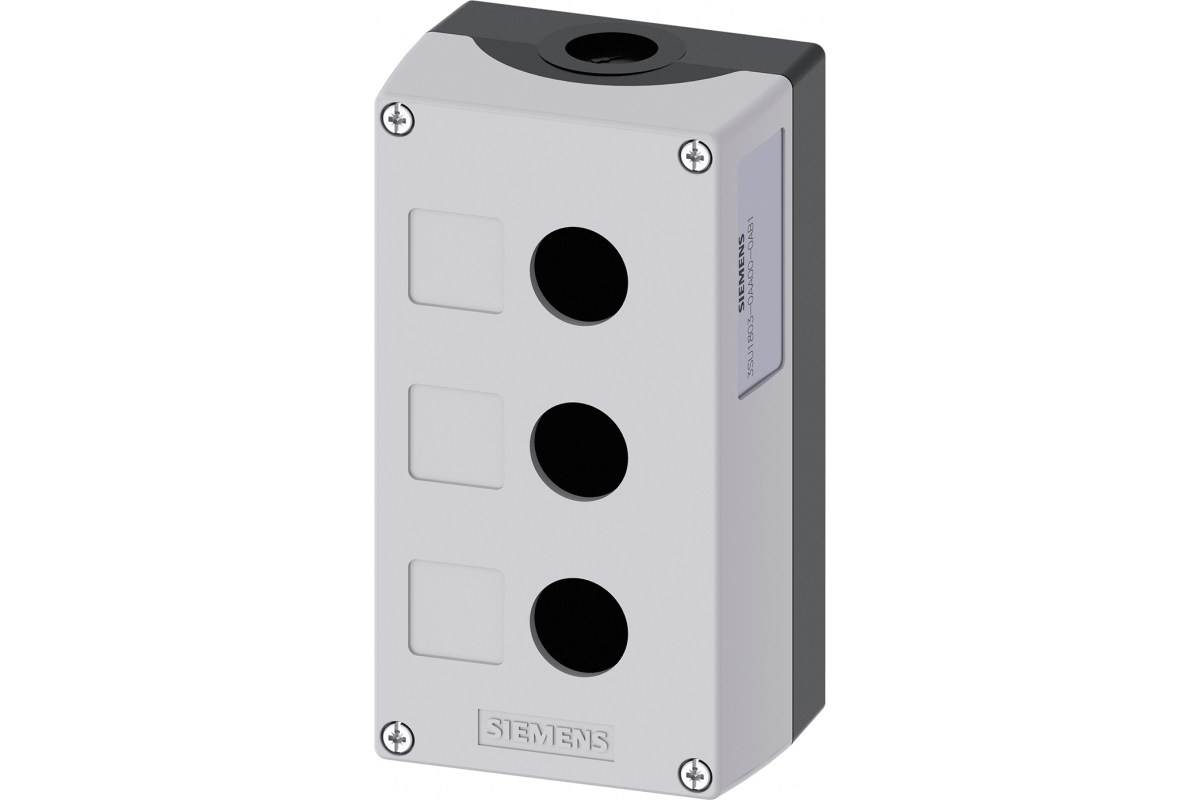 ПУСТОЙ КОРПУС ДЛЯ СБОРКИ ПОСТА УПРАВЛЕНИЯ С КНОПКАМИ, ПЕРЕКЛЮЧАТЕЛЯМИ И ИНДИКАТОРАМИ 22MM, С КРУГЛЫМИ ВЫРЕЗАМИ, МАТЕРИАЛ КОРПУСА - ПЛАСТИК, КРЫШКА КОРПУСА - СЕРАЯ, 3 КОМАНДНЫХ ТОЧКИ, ПЛАСТИК, КРЫШКА КОРПУСА С МЕСТАМИ ДЛЯ НАКЛЕИВАНИЯ МАРКИРОВОЧНЫХ ТАБЛИЧЕК