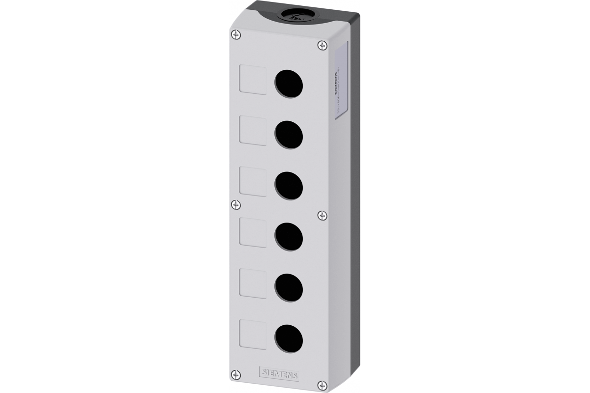 ПУСТОЙ КОРПУС ДЛЯ СБОРКИ ПОСТА УПРАВЛЕНИЯ С КНОПКАМИ, ПЕРЕКЛЮЧАТЕЛЯМИ И ИНДИКАТОРАМИ 22MM, С КРУГЛЫМИ ВЫРЕЗАМИ, МАТЕРИАЛ КОРПУСА - ПЛАСТИК, КРЫШКА КОРПУСА - СЕРАЯ, 6 КОМАНДНЫХ ТОЧЕК, ПЛАСТИК, КРЫШКА КОРПУСА С МЕСТАМИ ДЛЯ НАКЛЕИВАНИЯ МАРКИРОВОЧНЫХ ТАБЛИЧЕК