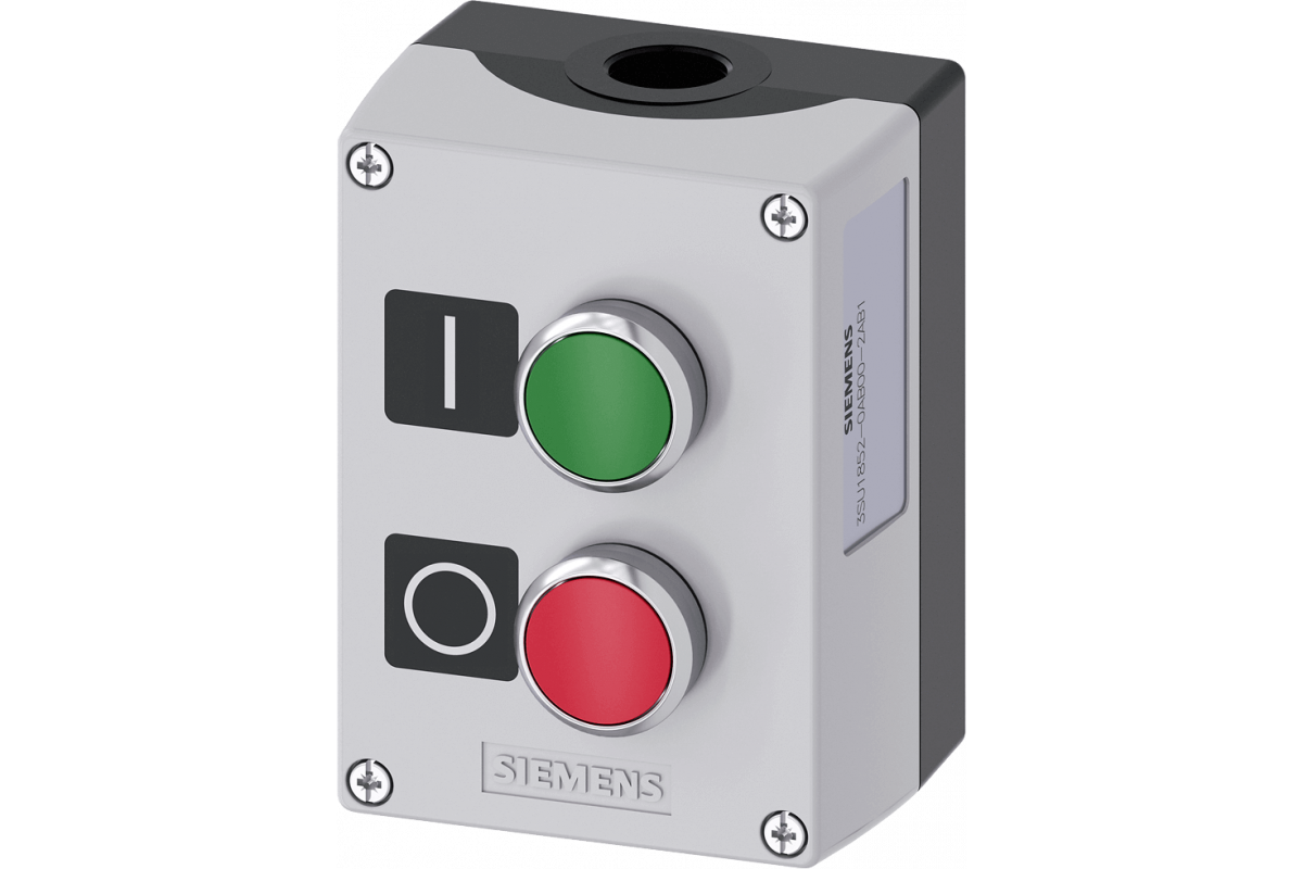 ПОСТ УПРАВЛЕНИЯ, 22MM, С КРУГЛЫМИ ВЫРЕЗАМИ, МАТЕРИАЛ КОРПУСА - МЕТАЛЛ, КРЫШКА КОРПУСА - СЕРАЯ, 2 КОМАНДНЫХ ТОЧКИ, МЕТАЛЛ, B=КНОПКА ЗЕЛЁНАЯ, МАРКИРОВКА: "I", 1НО, ВИНТОВЫЕ КЛЕММЫ, A=КНОПКА КРАСНАЯ, МАРКИРОВКА: "O", 1НЗ, ВИНТОВЫЕ КЛЕММЫ, МОНТАЖ КОНТАКТНЫХ МОДУЛЕЙ - НА ОСНОВАНИИ КОРПУСА, TOP AND BOTTOM 1 X M20 EACH