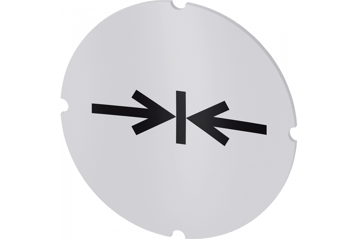 Табличка с надписью для кнопки с подсветкой, круглая, молочного цвета с черным шрифтом, с графическим символом: зажим