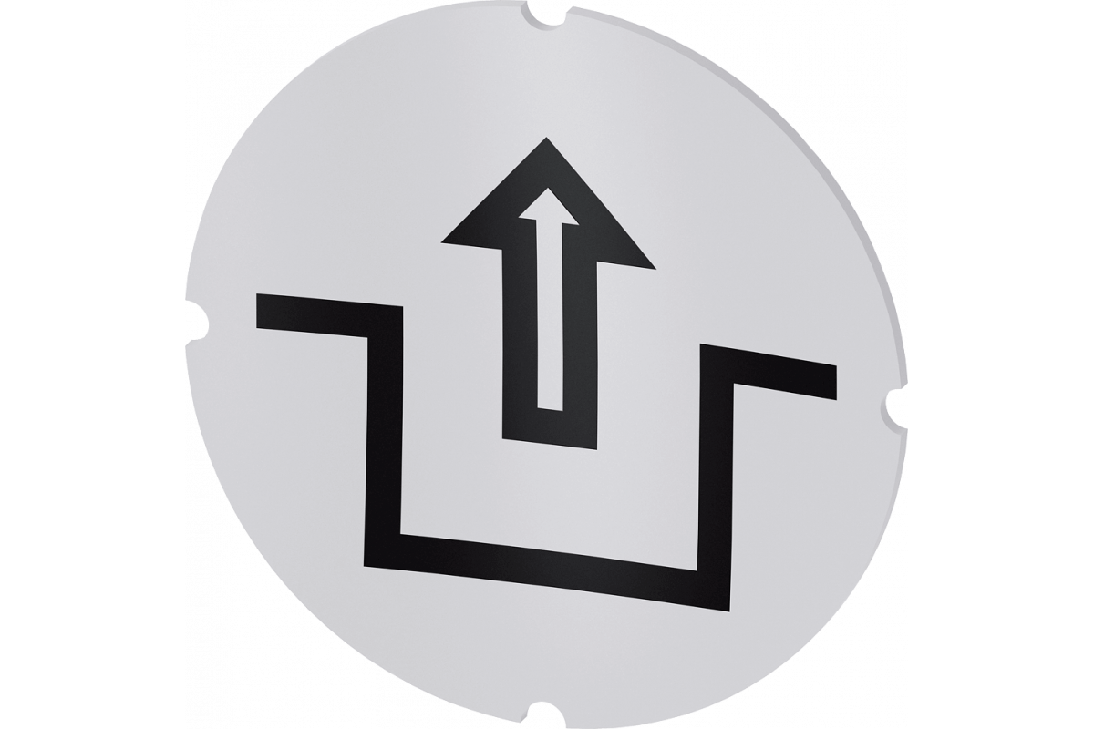 Табличка с надписью для кнопки с подсветкой, круглая, молочного цвета с черным шрифтом, с графическим символом: разблокировка