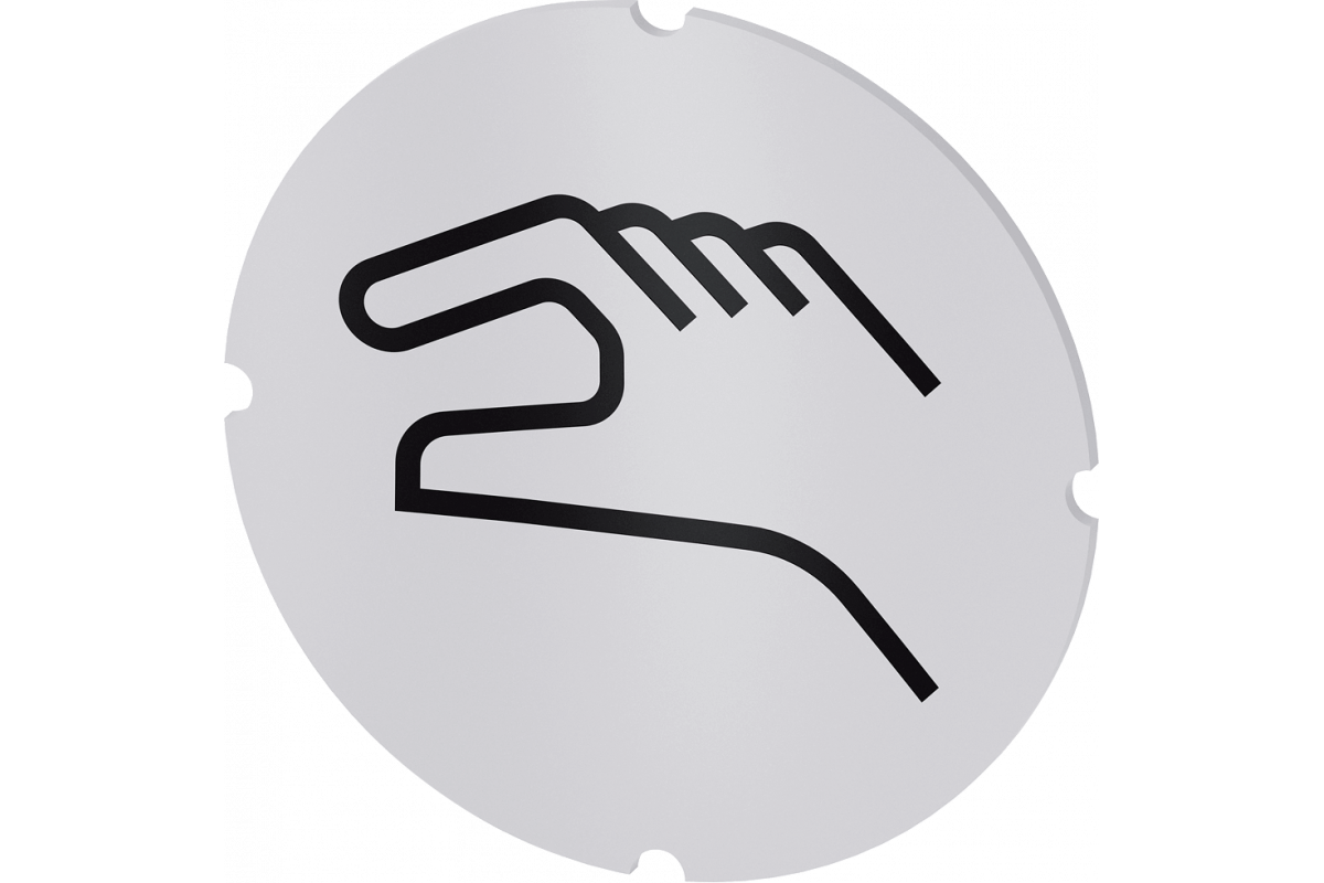Табличка с надписью для подсвечиваемой кнопки, круглая, молочного цвета с черным шрифтом, с графическим символом: ручное управление