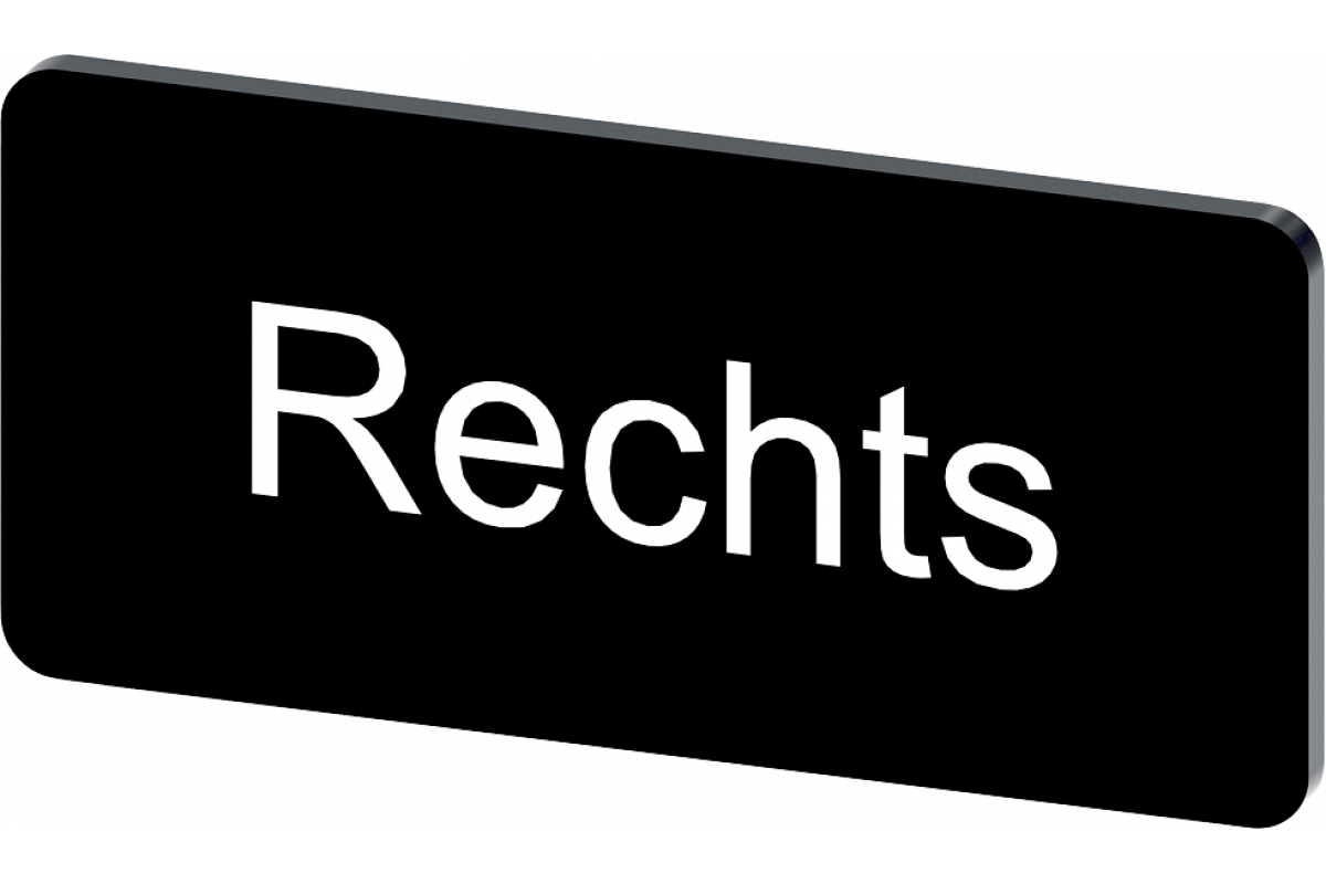 Этикетка для защелкивания или приклеивания, на держателе этикетки, размер этикетки 12.5x27 мм, черная этикетка, белый шрифт, с надписью: Rechts