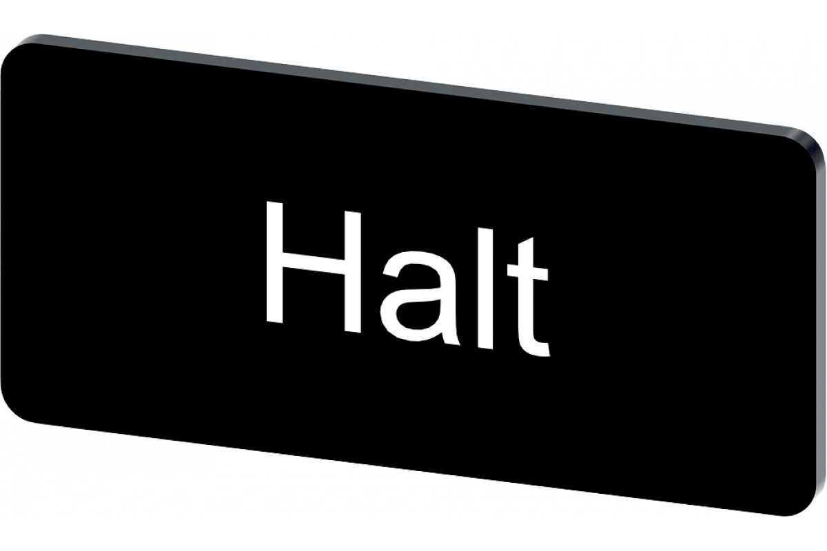 Этикетка для наклеивания или приклеивания на держатель этикетки, размер этикетки 12.5x27 мм, черная этикетка, белый шрифт, с надписью: Halt