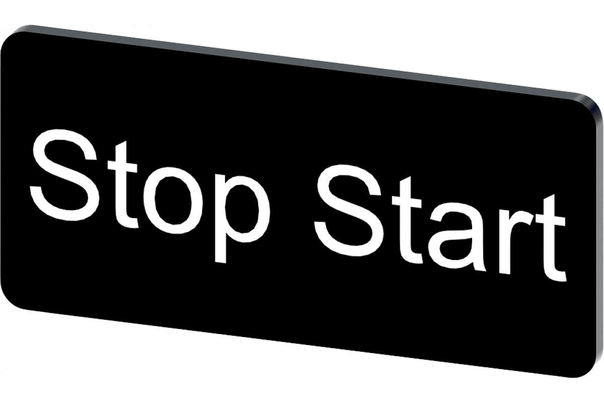 Этикетка для наклеивания или приклеивания на держатель этикетки, размер этикетки 12.5x27 мм, черная этикетка, белый шрифт, с надписью: Stop Start