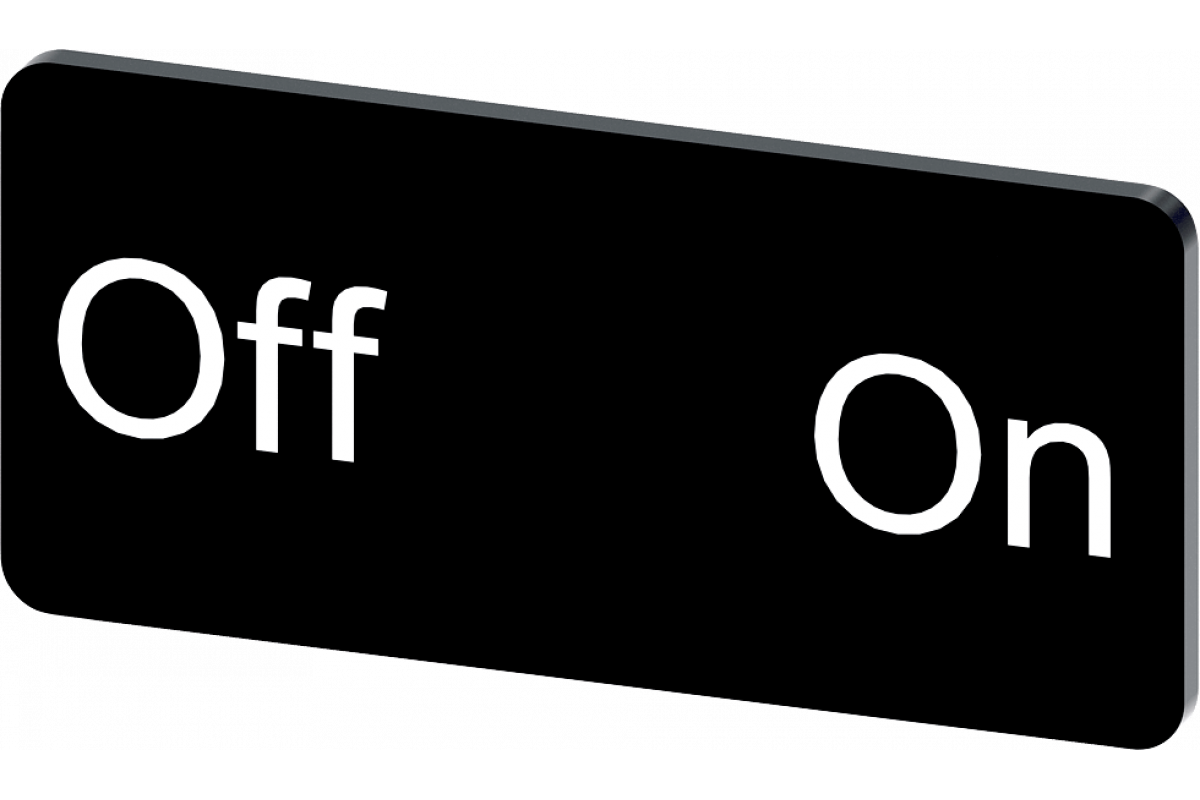 Этикетка для наклеивания или приклеивания к держателю этикеток, размер этикетки 12.5x27 мм, черная этикетка, белый шрифт, с надписью: Off On