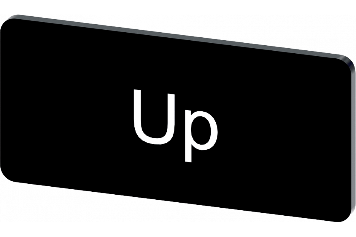 Этикетка для наклеивания или приклеивания к держателю этикеток, размер этикетки 12.5x27 мм, черная этикетка, белый шрифт, с надписью: Up