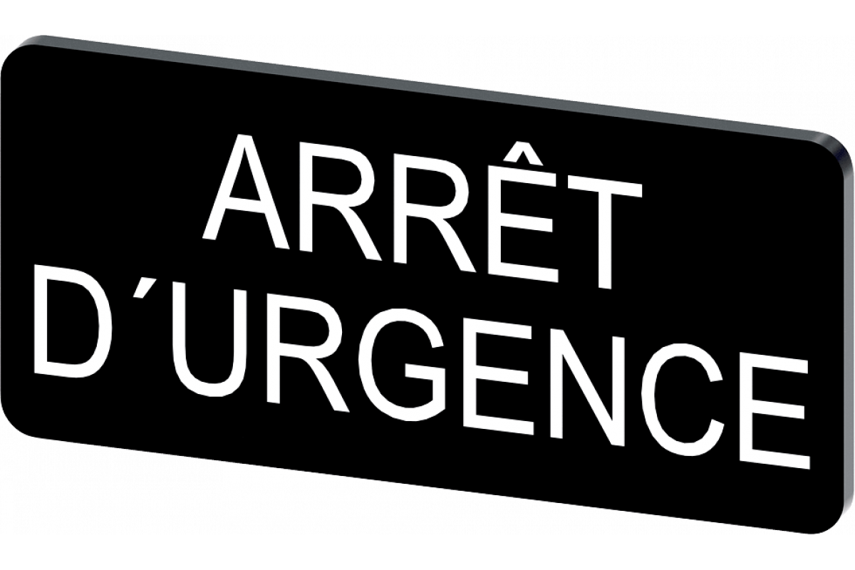 МАРКИРОВОЧНАЯ ТАБЛИЧКА ДЛЯ НАКЛЕИВАНИЯ ИЛИ ЗАЩЕЛКИВАНИЯ НА ДЕРЖАТЕЛЕ, РАЗМЕР 12.5 X 27MM, ЧЕРНАЯ, НАДПИСЬ БЕЛАЯ, С МАРКИРОВКОЙ: ARRET D'URGENCE